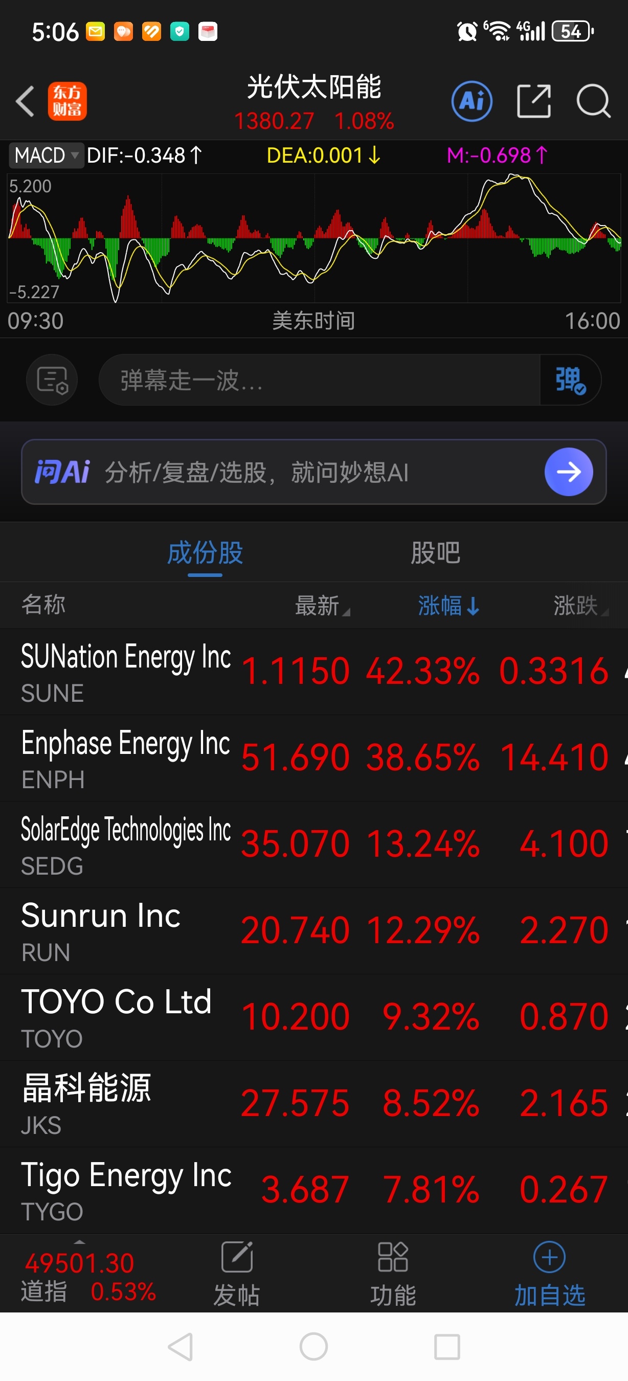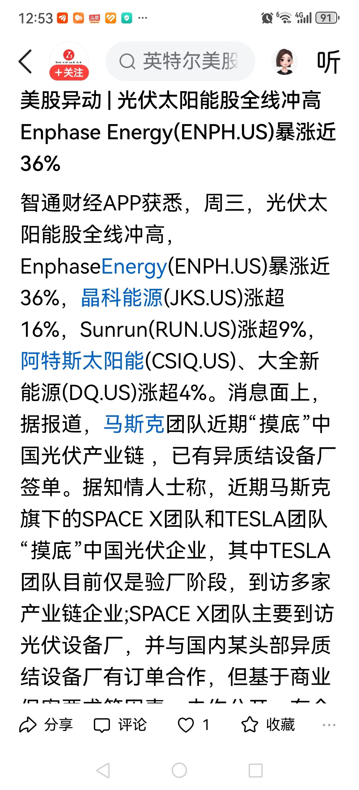 $东方日升(SZ300118)$ 特大好消息,美股太阳能今天暴涨,也进一步确认spacex与国内异质结领先企业有稳定的订单采购(地球人都知道日升异质结领先全球,说的就是东方日升)。今天日升也该启动了,大家扶好坐稳等待发射。