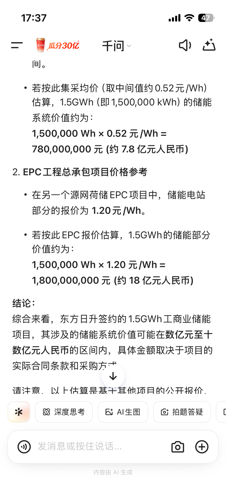 $东方日升(SZ300118)$ 1.5gwh储能签单 大模型估测几亿到十几亿. 总的趋势向好. 现在是越发越跌,有坏人在干坏事. 理性看待. 那些坏事说不定哪天就给你干坏事. 没利润的别入,有利润的自己分析分析