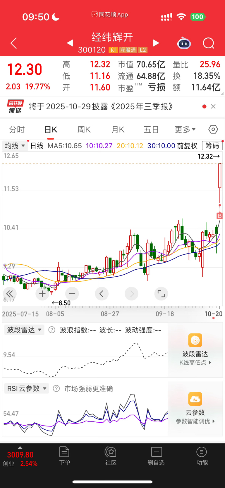 10月20日:买入经纬辉开操作记录请勿跟票,你的赢亏自己负责。