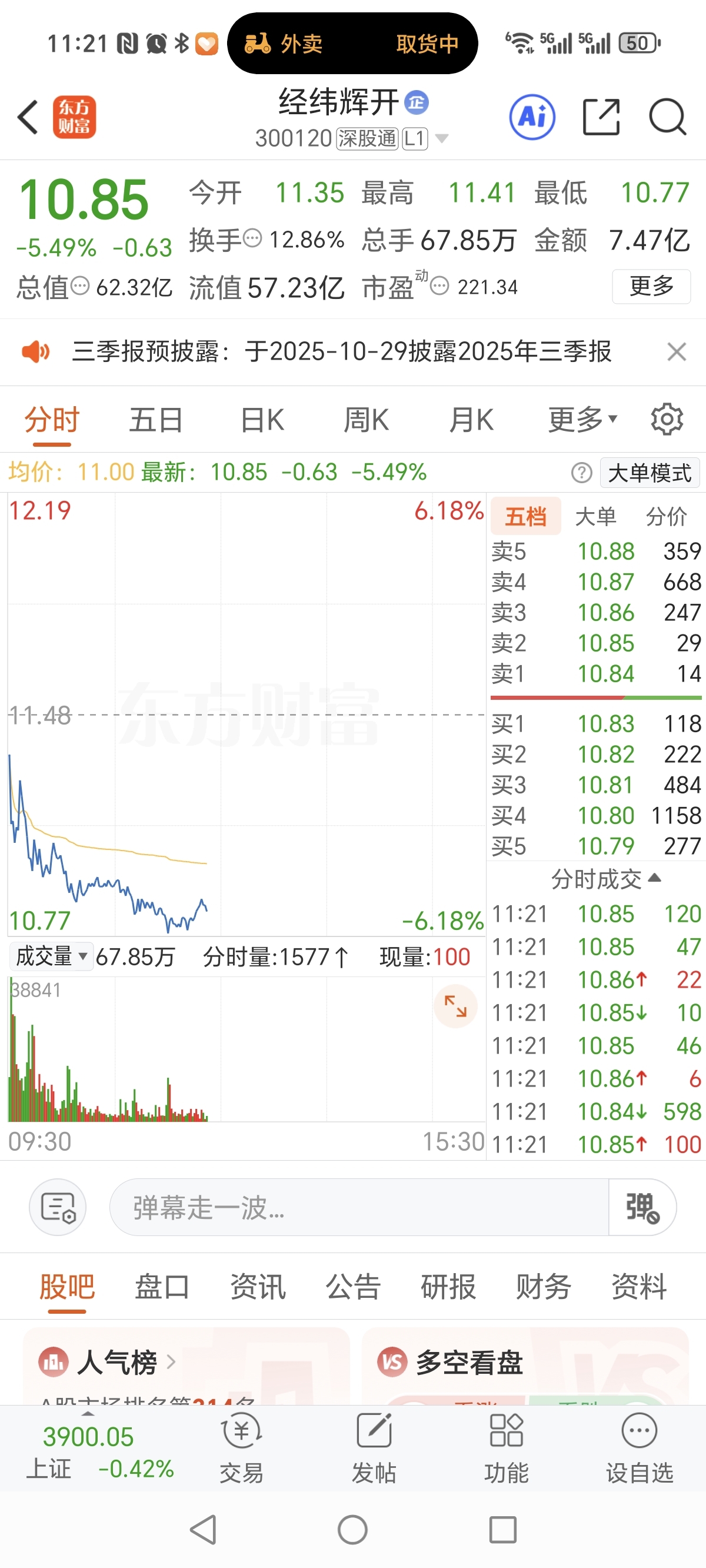 $经纬辉开(SZ300120)$ 今天能跑就跑吧一天分时线都没有上去群