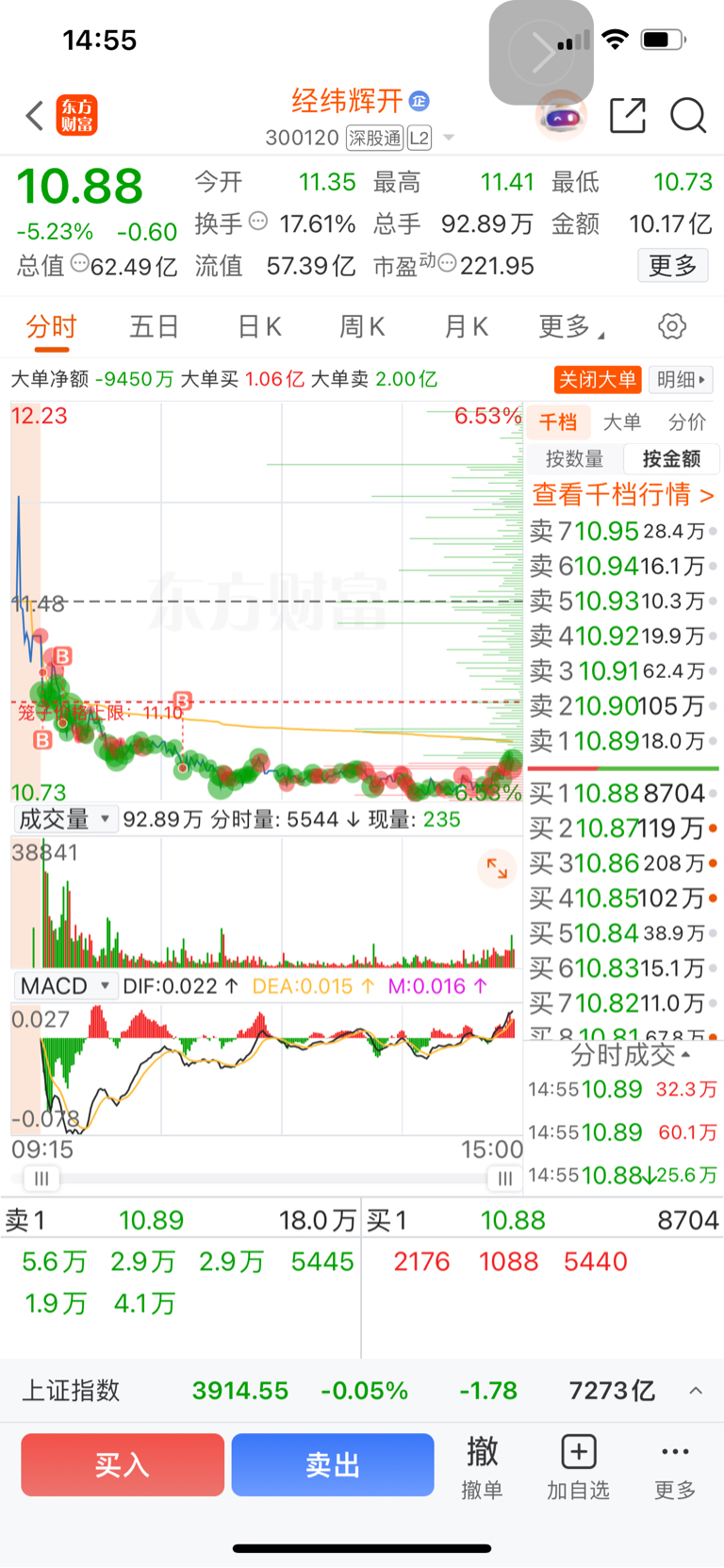 $经纬辉开(SZ300120)$ 不晓得是魔鬼感到莫名其妙、看尾盘大资金抢筹非常明显