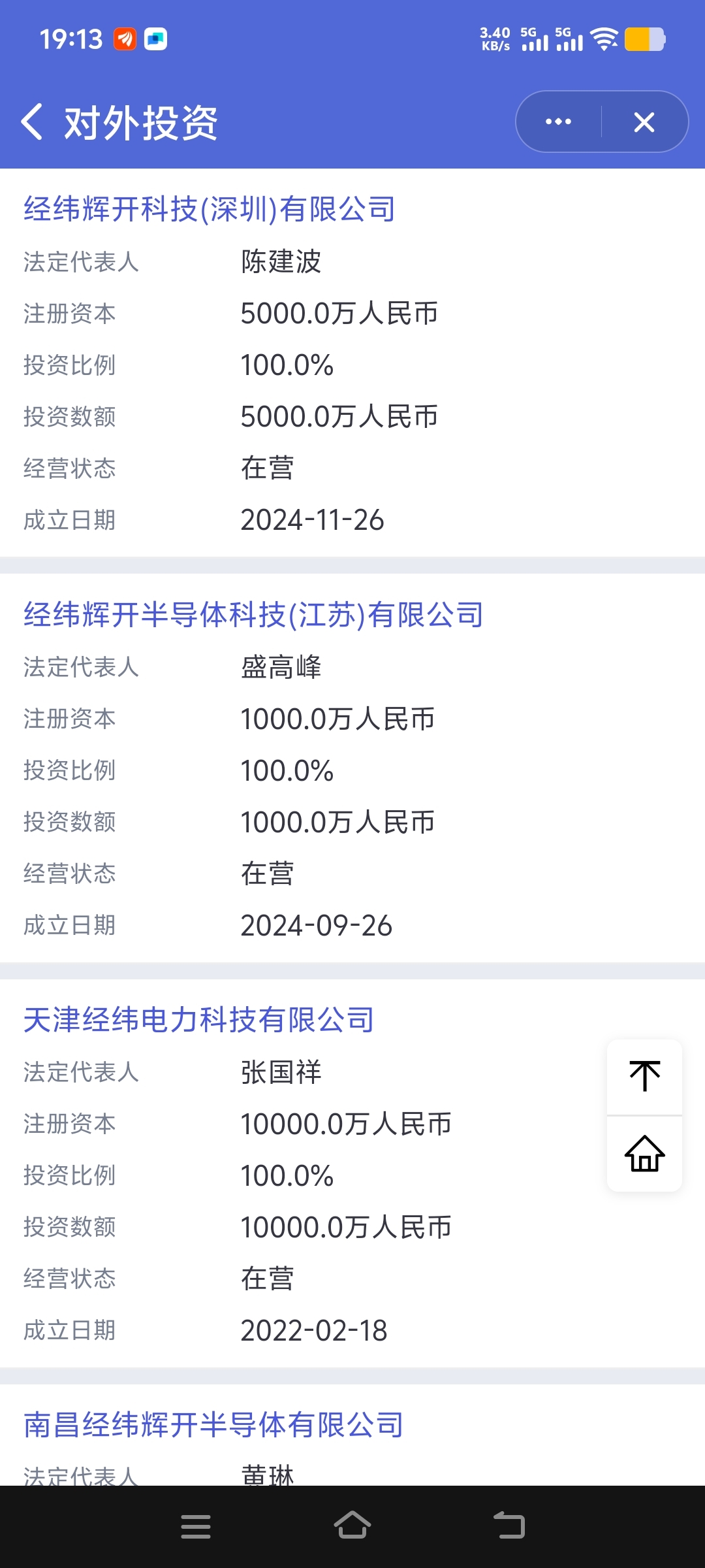 政策这么给力!!!经纬辉开在深圳好几个公司:1、1995年就在深圳注册半导体生产