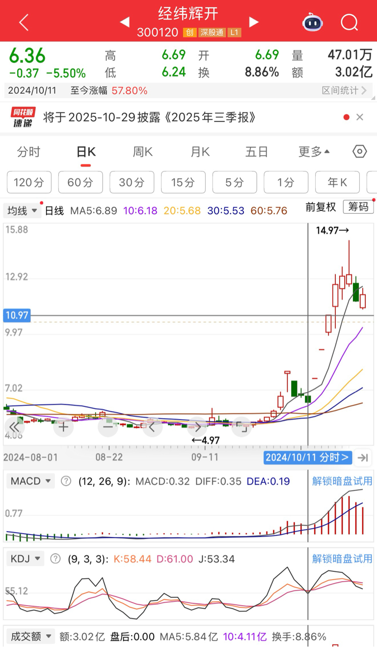 $经纬辉开(SZ300120)$ 参考去年10月11号