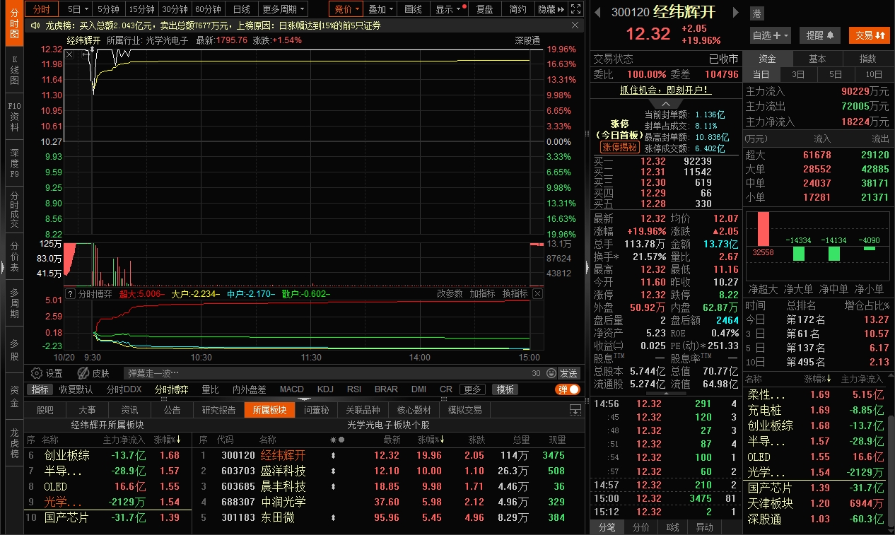 $经纬辉开(SZ300120)$ 涨停那天,主力的成本是12.07元,很高。