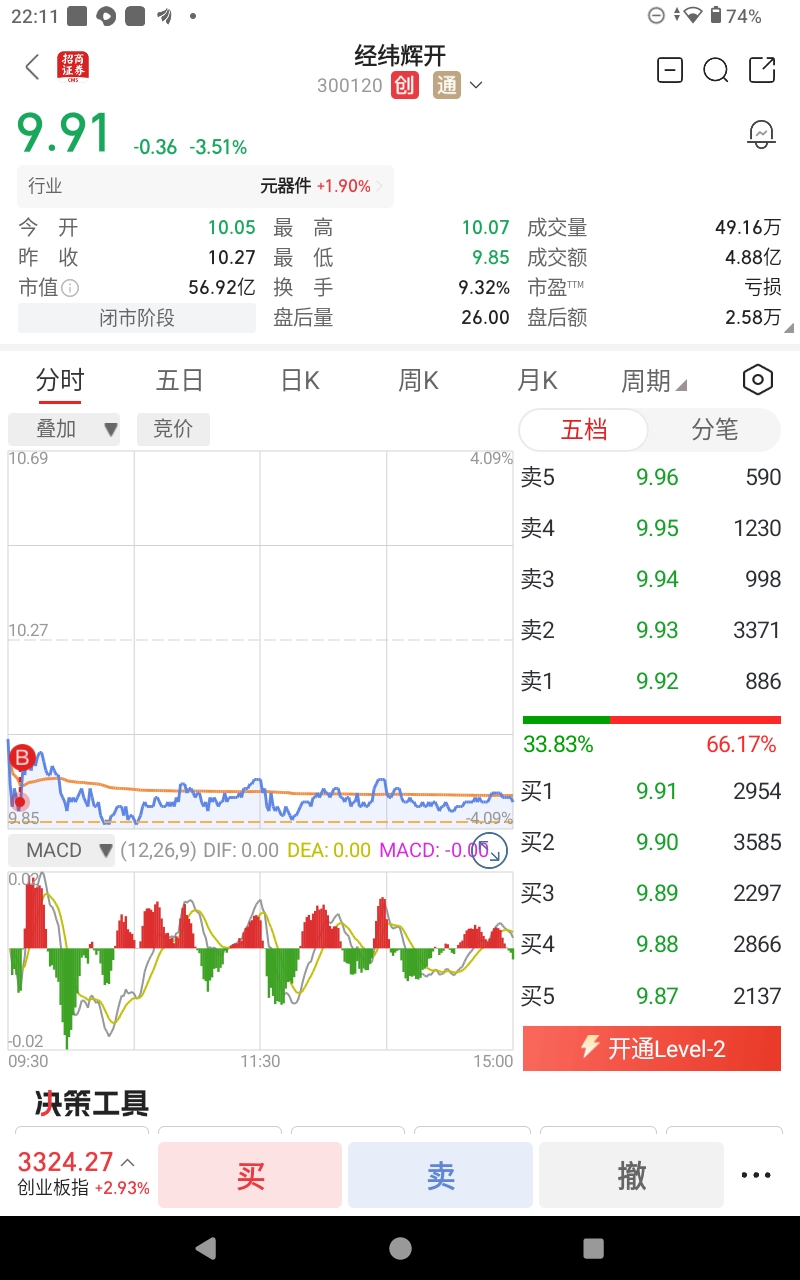 $经纬辉开(SZ300120)$ 我不敢追又不想错过挣钱,结果只能买连跌票,明天让我挣两毛吧。
