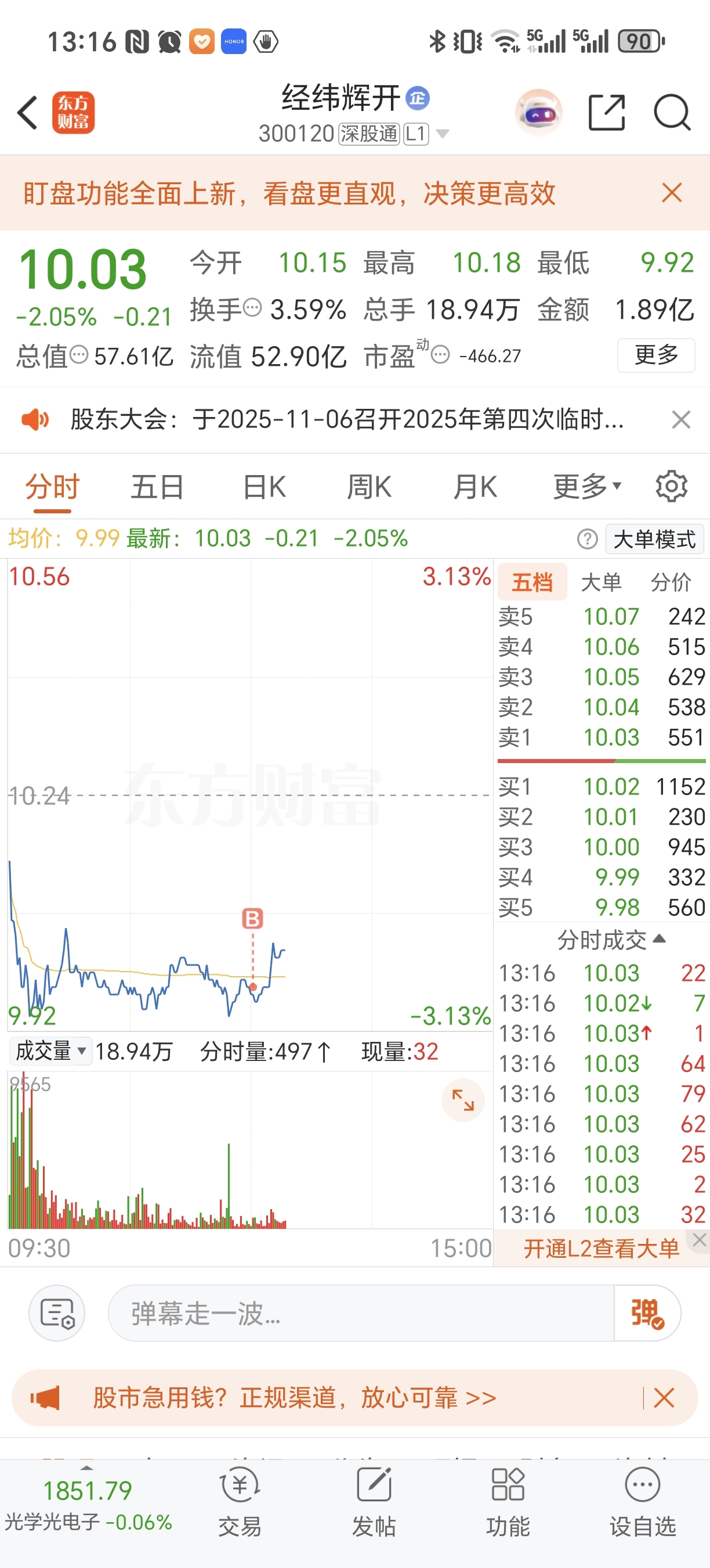 $经纬辉开(SZ300120)$ 小跌小补,大跌大补