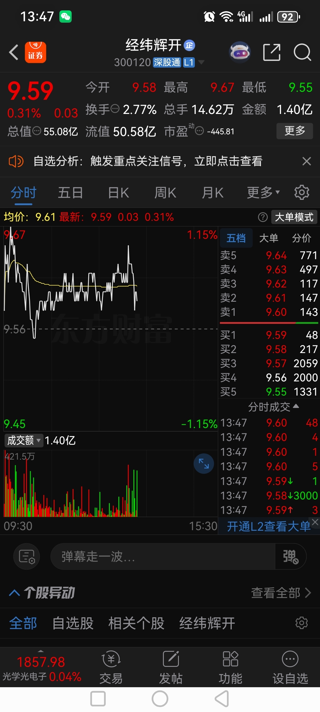 $经纬辉开(SZ300120)$ #炒股日记# 全部都是大单卖了哈各位