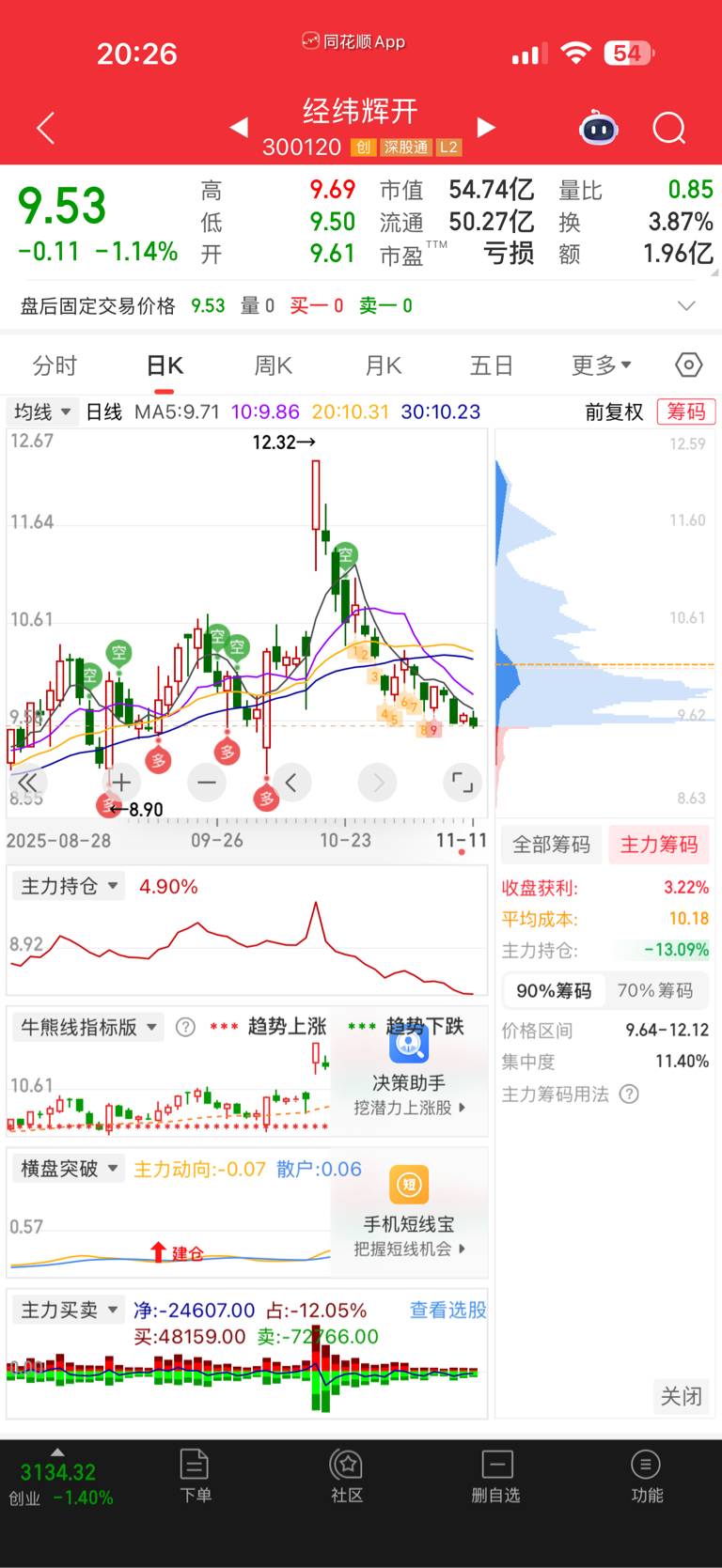 $经纬辉开(SZ300120)$ 行了都别吭声了,主力筹码不够,早着呢~