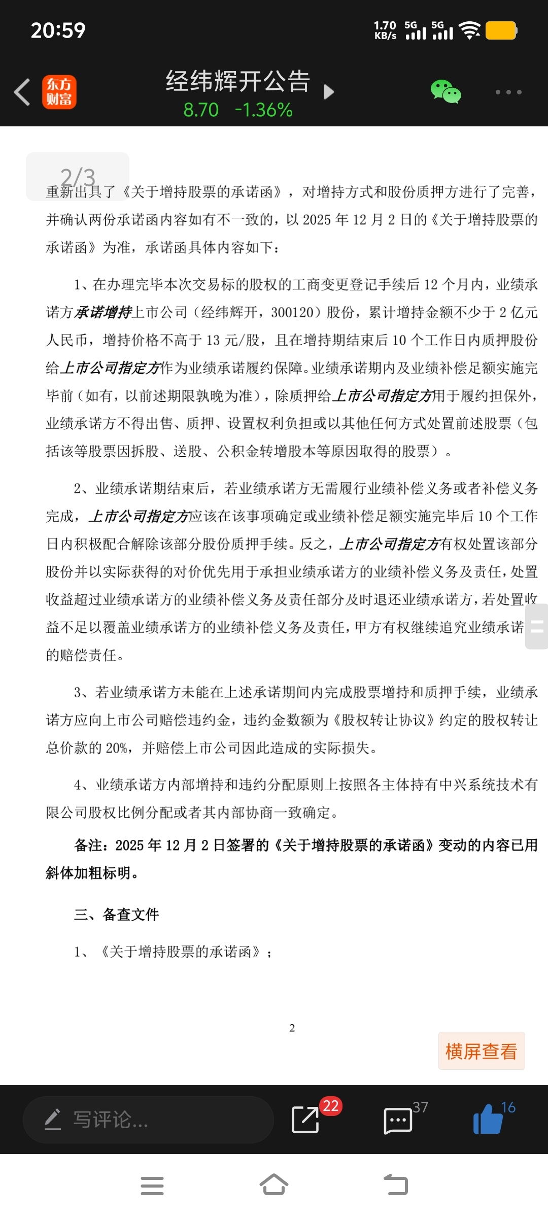 $经纬辉开(SZ300120)$ 再读增持股票的承书,中兴系统在12月内没有完成承诺数量增持和质押要赔偿:成交价8.5亿*20%=1.7亿违约金,所以经纬辉开怎么会打压股价给中兴系统吃货