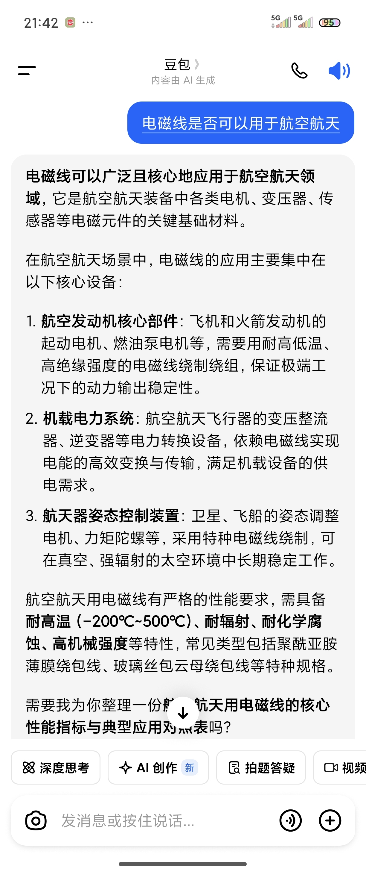 公司的电磁线有用于航天航空吗$经纬辉开(SZ300120)$