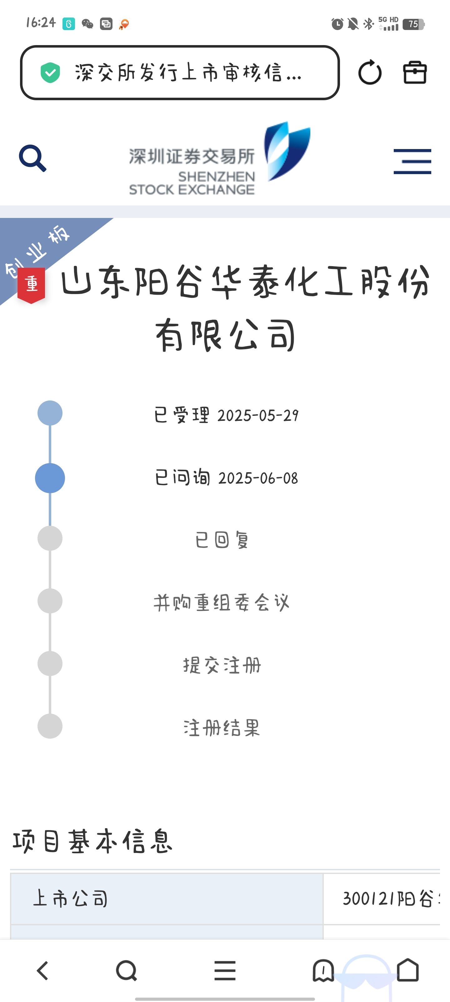 $阳谷华泰(SZ300121)$ 官网已更新,材料接收后等待问询回复
