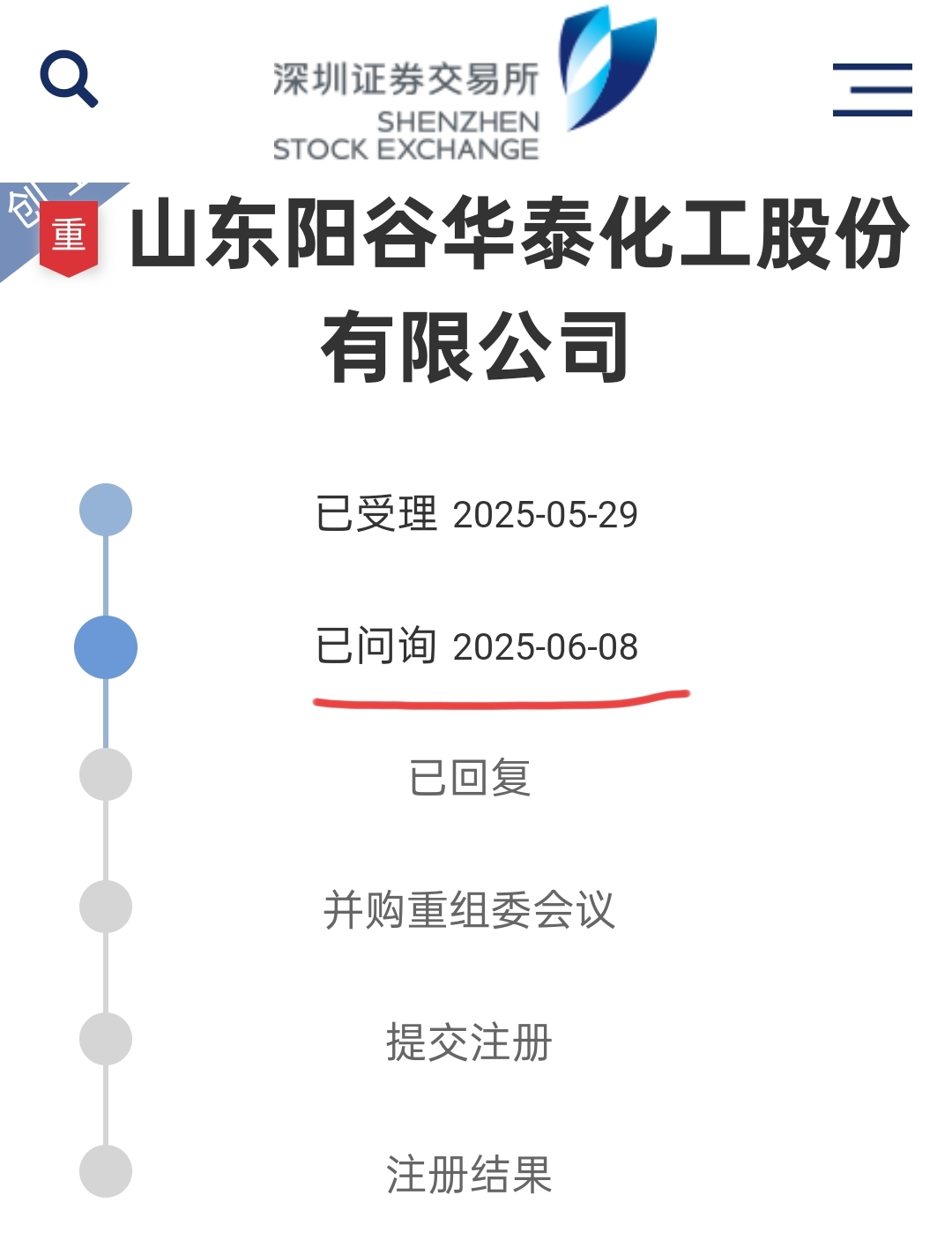 2025年6月8日,阳谷华泰收到深圳证券交易所出具的《关于山东阳谷华泰化工股份有限公司发行股份购买资产并募集配套资金申请的审核问询函》 。公司会同相关中介机构对问询函所涉及的问题进行了认真核查,并于2025年6月28日披露了相关回复文件 。