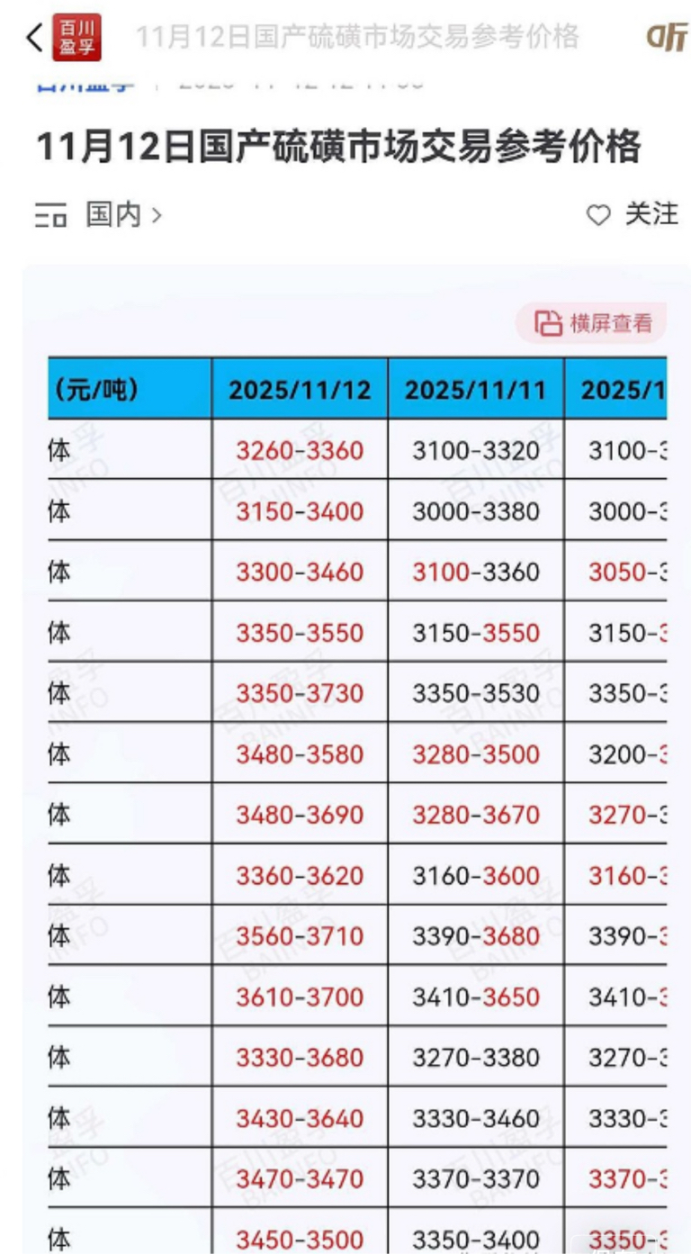 $阳谷华泰(SZ300121)$ 硫磺一路涨价,部分报价已经突破3700元!近段时间涨价已超过500元!
