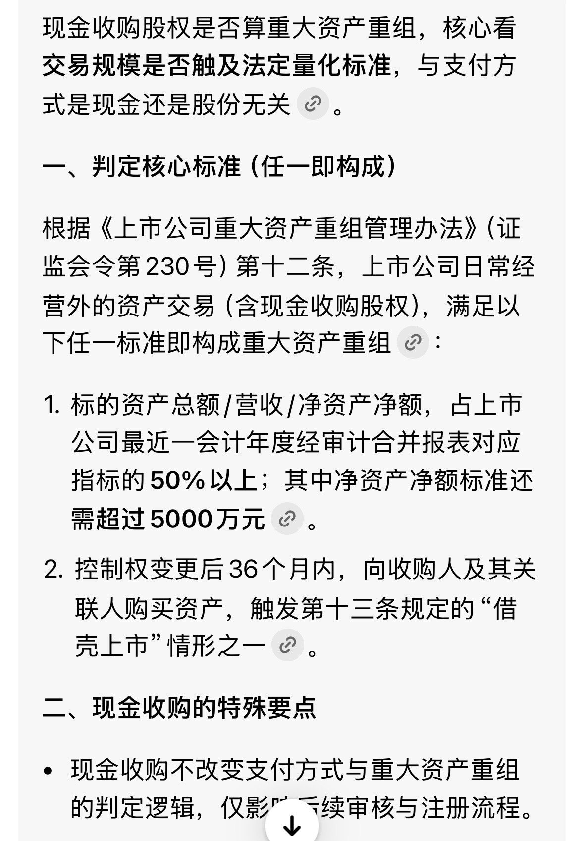 判断一下现金收购波米是否符合重大资产重组?若是,离满1个月还有2个交易日,2月1日后真的随时可公布收购预案,明后天打算低吸一点,避免错过翻倍行情