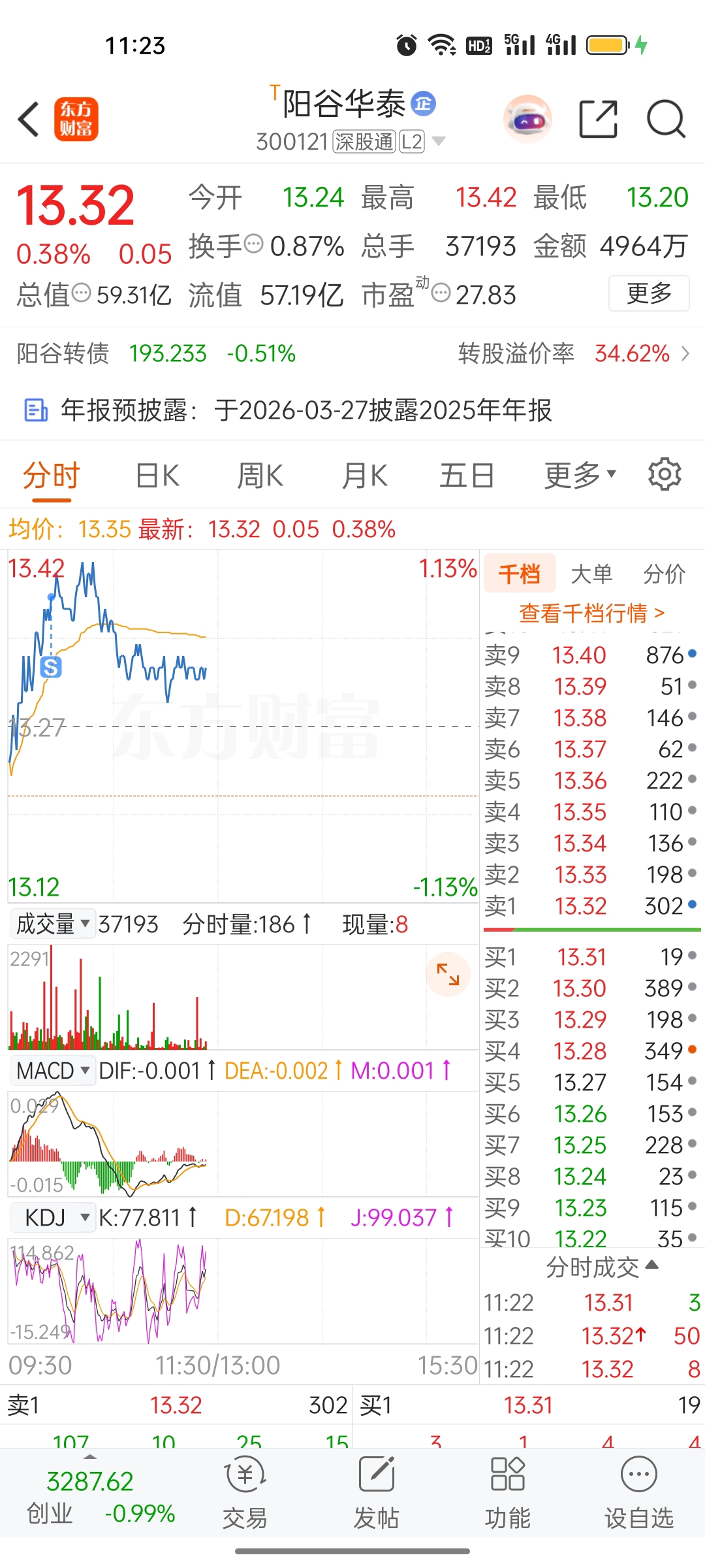 $阳谷华泰(SZ300121)$ 这票早盘冲高卖出,下午接回,十次十中,我14.15进的,就是这样来回操作,现在还赢利