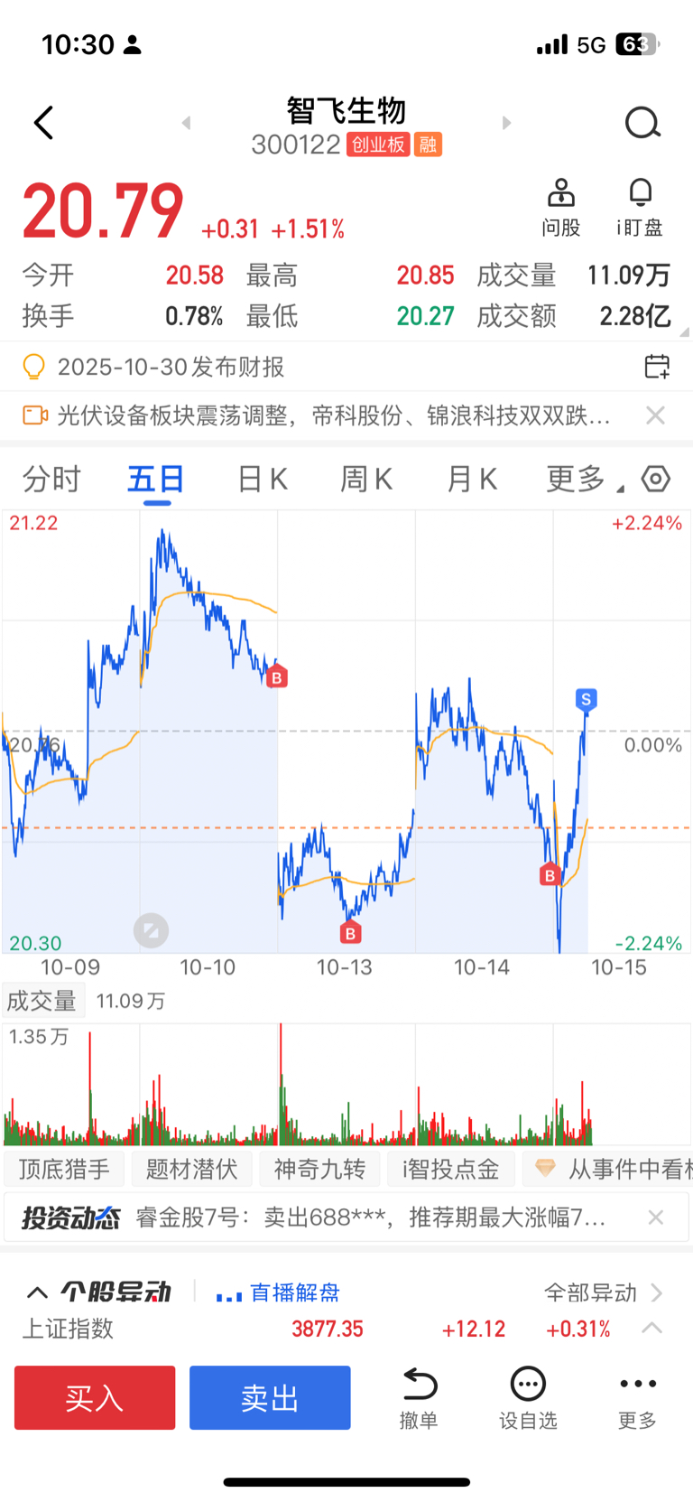 $智飞生物(SZ300122)$ 三天了才挣一个点20.81出来了