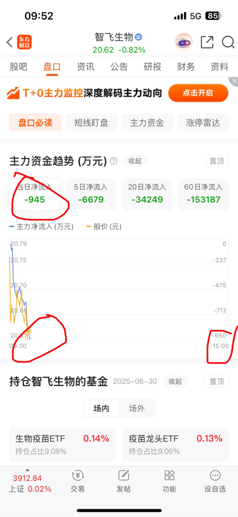$智飞生物(SZ300122)$ 主力一直是跑的