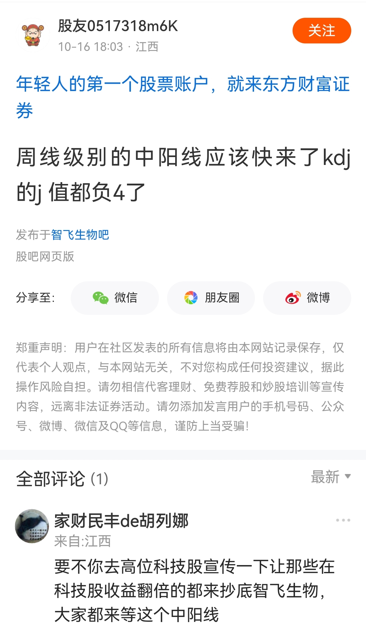 温馨提示: 1.根据《证券法》规定,禁止编造、传播虚假信息或者误导性信息,扰乱证券市场;2.用户在本社区发表的所有资料、言论等仅代表个人观点,与本网站立场无关,不对您构成任何投资建议。用户应基于自己的独立判断,自行决定证券投资并承担相应风险。《东方财富社区管理规定》