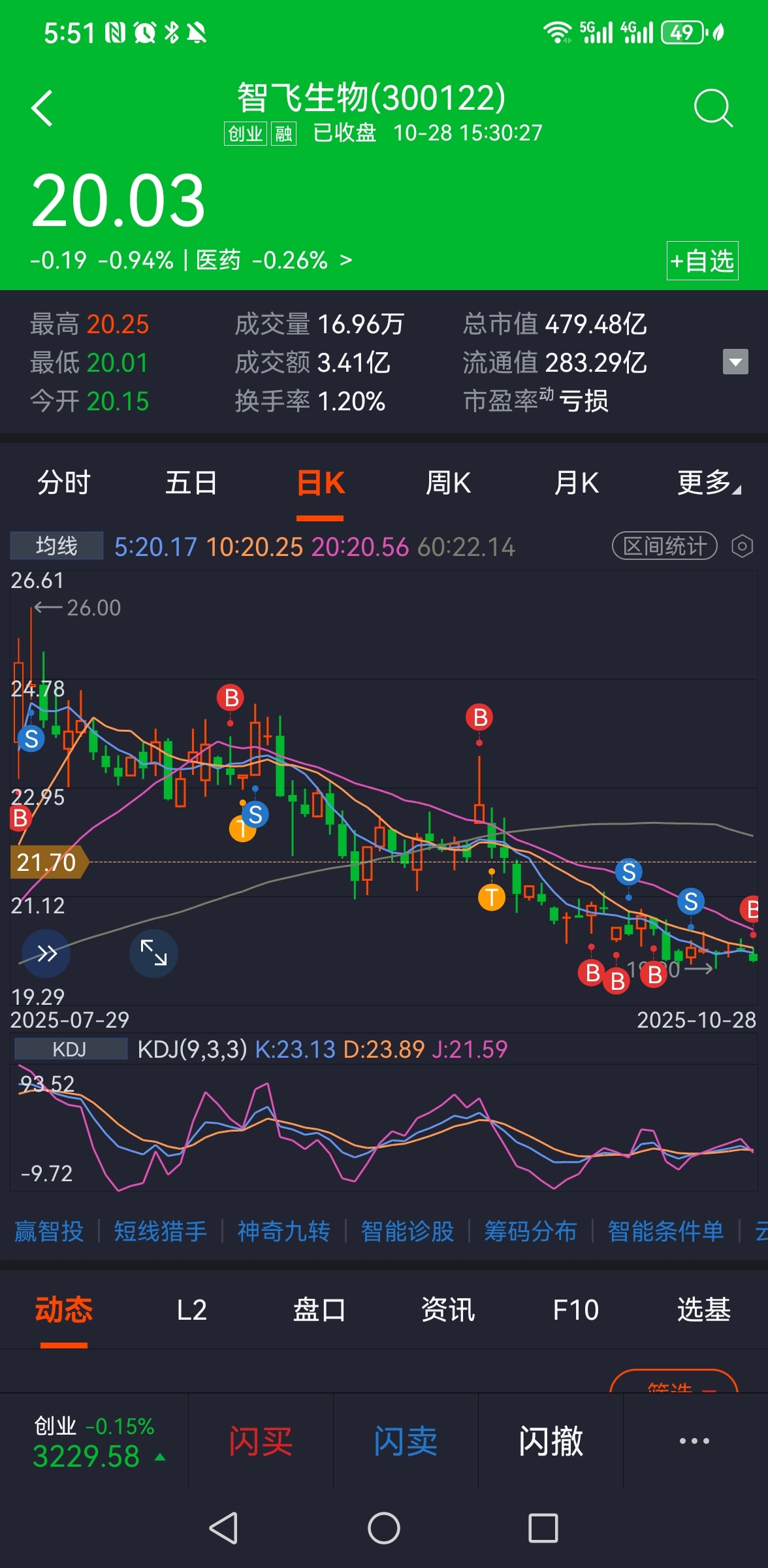 $智飞生物(SZ300122)$ 你让我成功的验证了,下跌趋势中做t,只是成本低了,还是亏的一塌糊涂