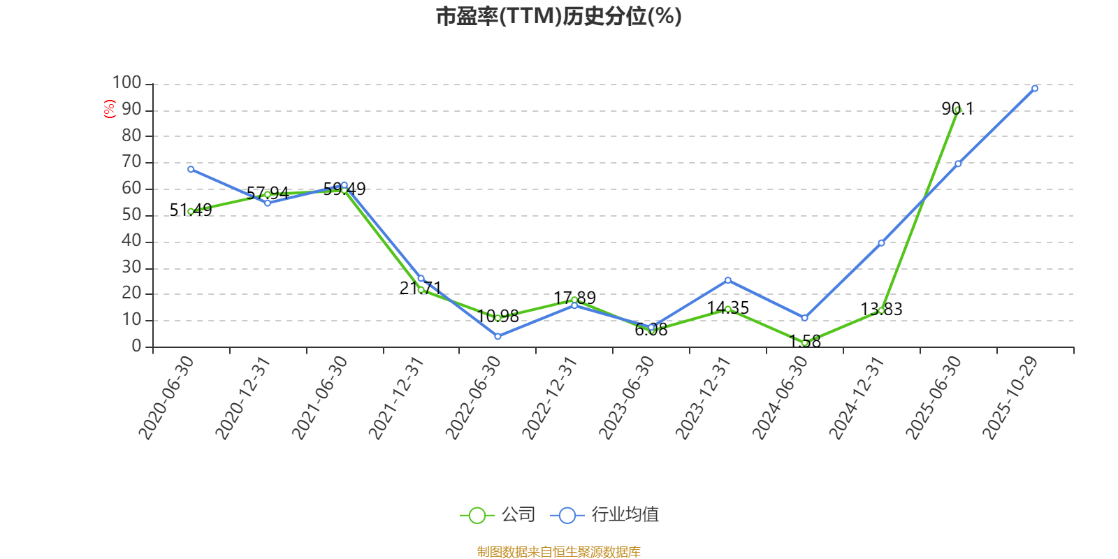 市盈率、市净率为负时,不显示当期分位数,会导致折线图中断。