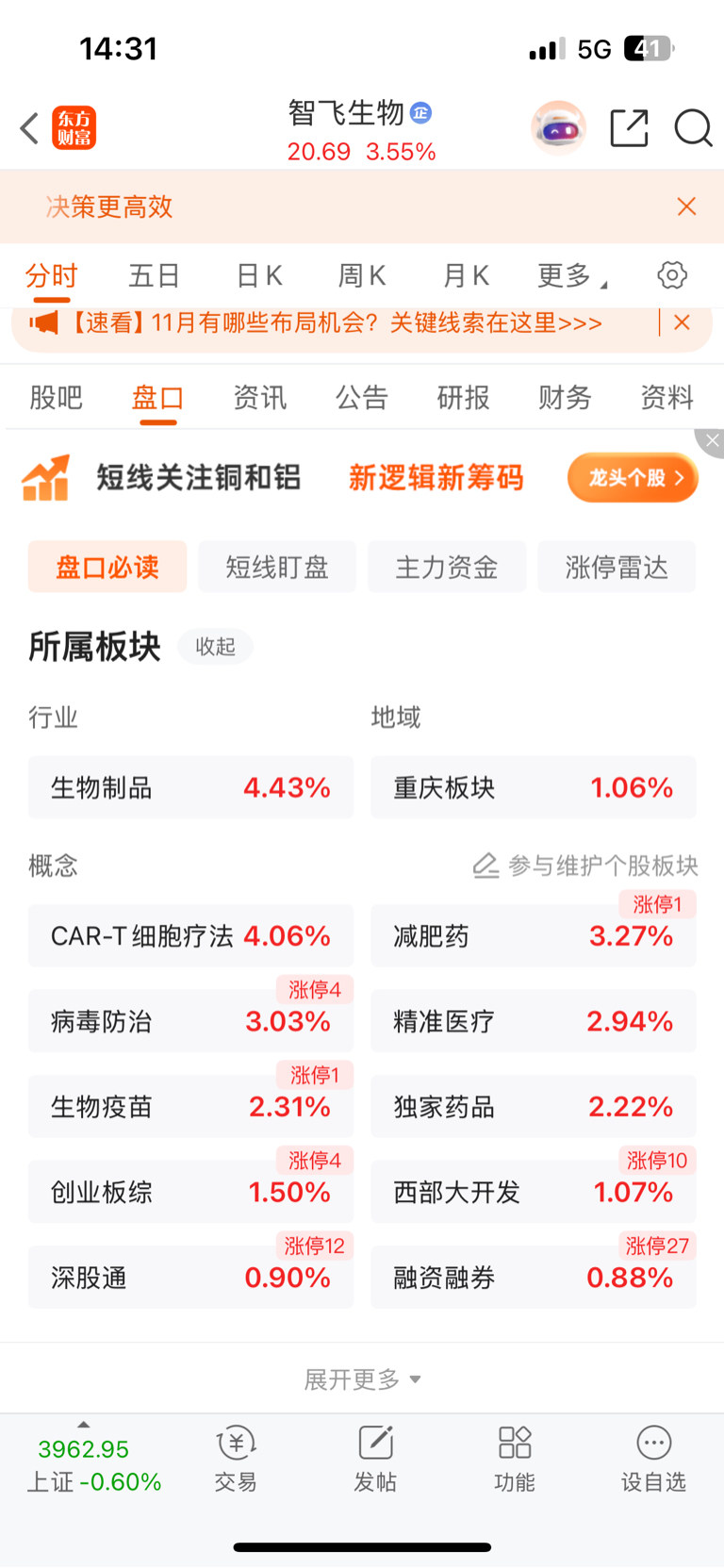 $智飞生物(SZ300122)$ 今天是被动涨的