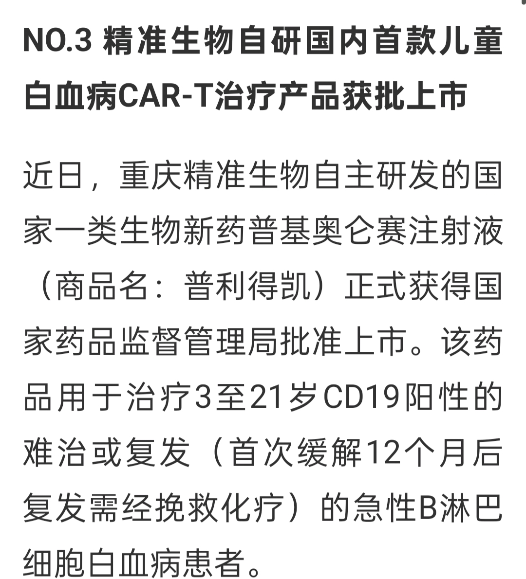 告诉大家一个好消息,前几天提醒大家的精准生物,白血病治疗药,上市了。