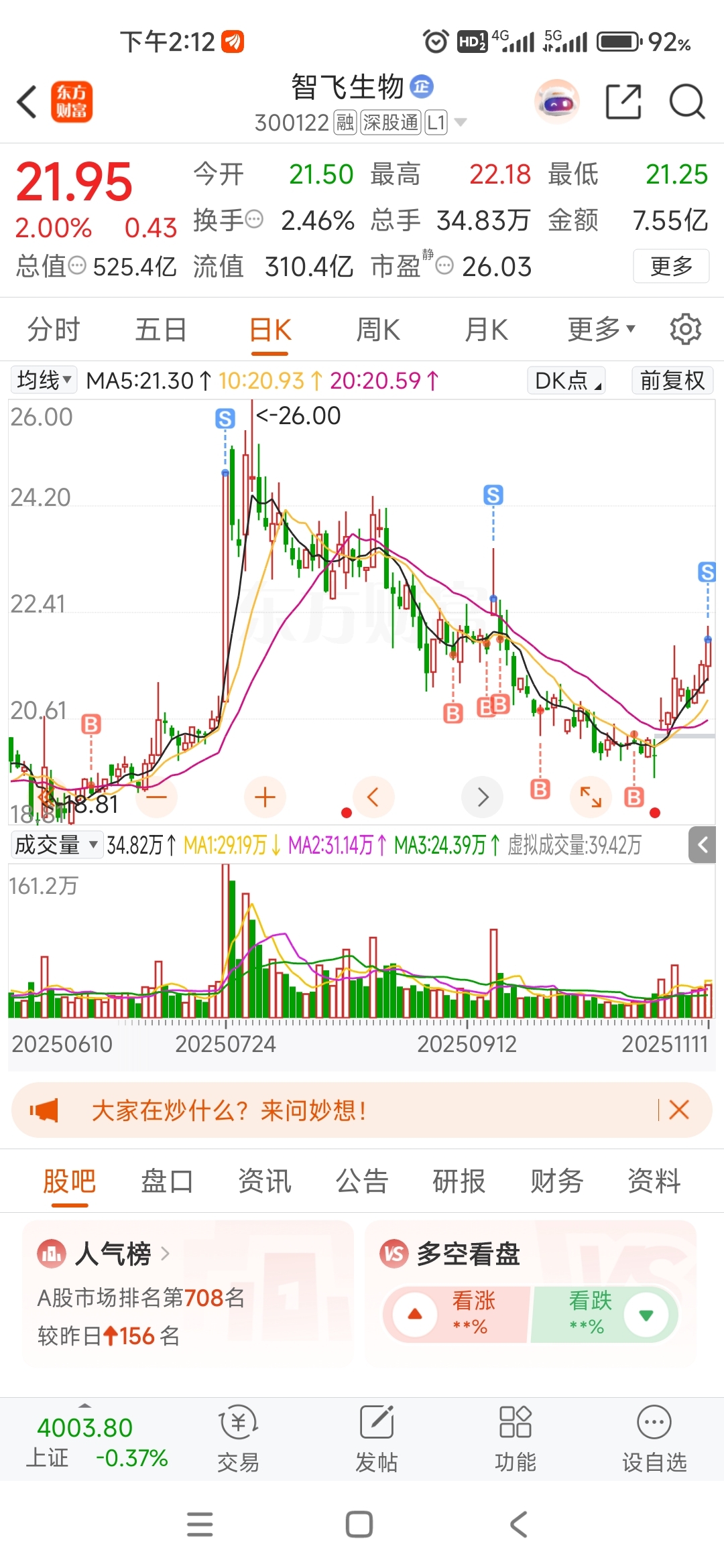 $智飞生物(SZ300122)$ 不拉我就抛了,满仓抛。明天拉涨停让我后悔吧!