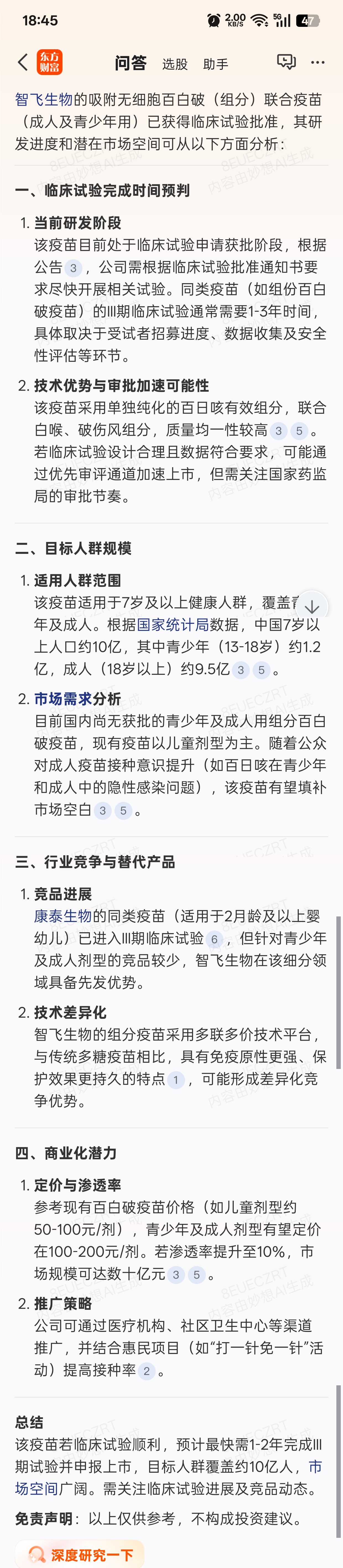 突然看到智飞生物的吸附无细胞百白破,不知其市场前景,就问了一下妙想,不知真假……