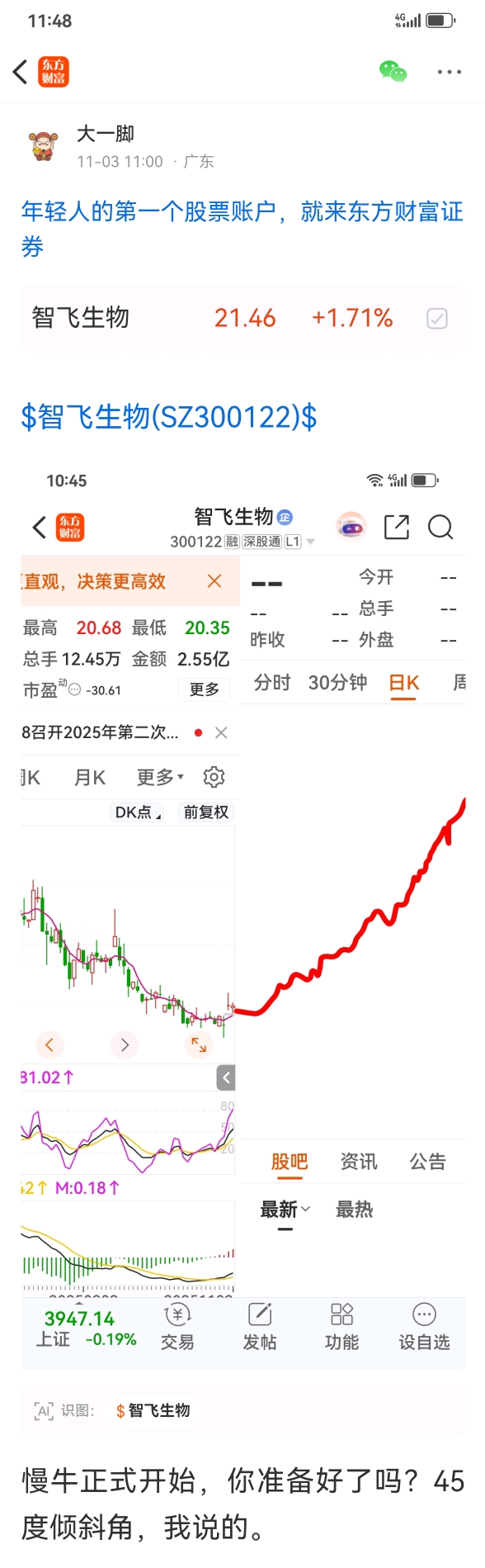 11月3号预判,45度角上涨,不信你来量。关注我,要跑时候通知你减仓。