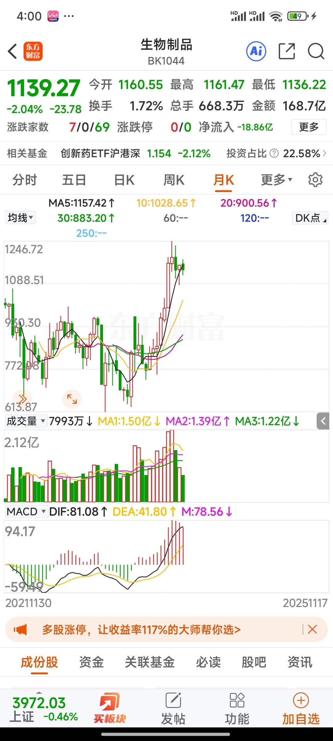 看看创业板!再看看生物板块!最后看看这个坑货!就知道它有多可恨了!