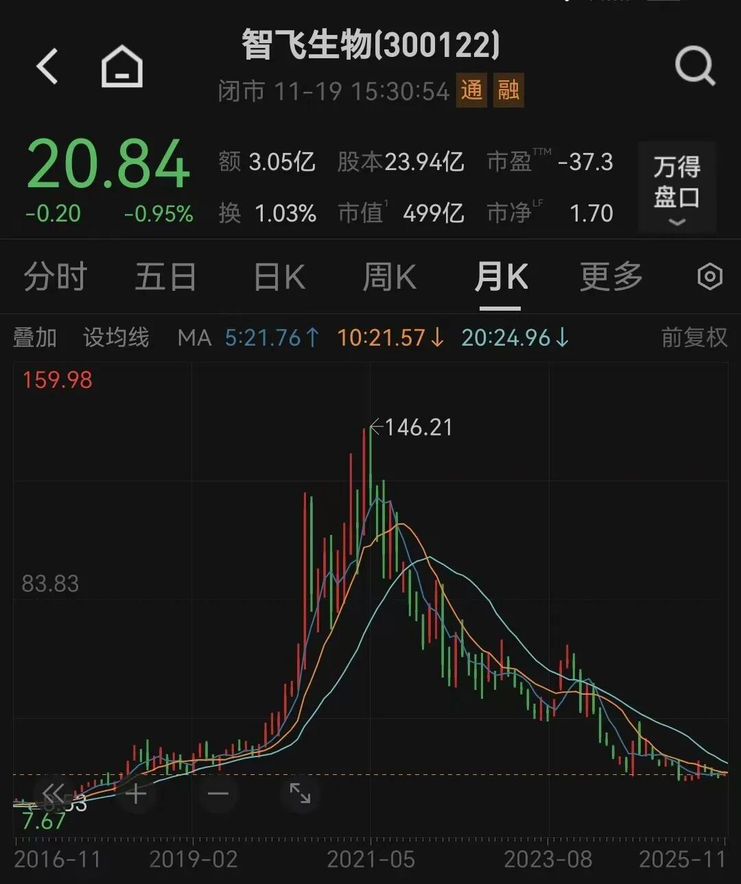 受此影响,智飞生物、沃森生物等疫苗上市公司的盈利持续大幅下滑,其股价也持续暴跌。