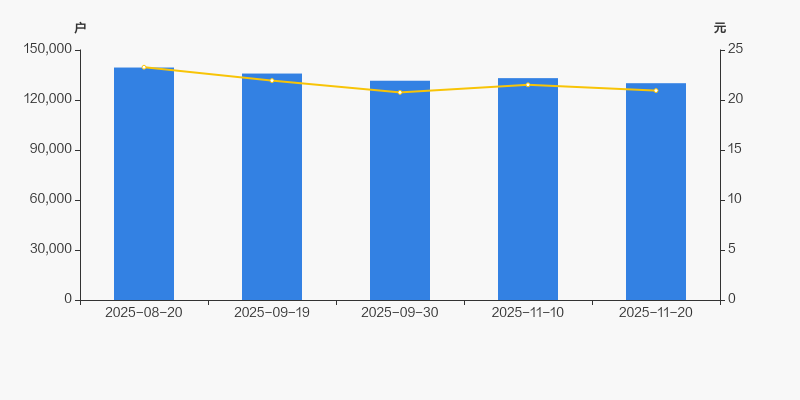截至2025年11月20日,公司最新总股本为23.94亿股,其中流通股本为14.14亿股。户均持有流通股数量由上期的1.06万股上升至1.09万股,户均流通市值22.77万元。