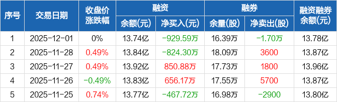 智飞生物:融资净偿还929.59万元,融资余额13.74亿元(12-01)