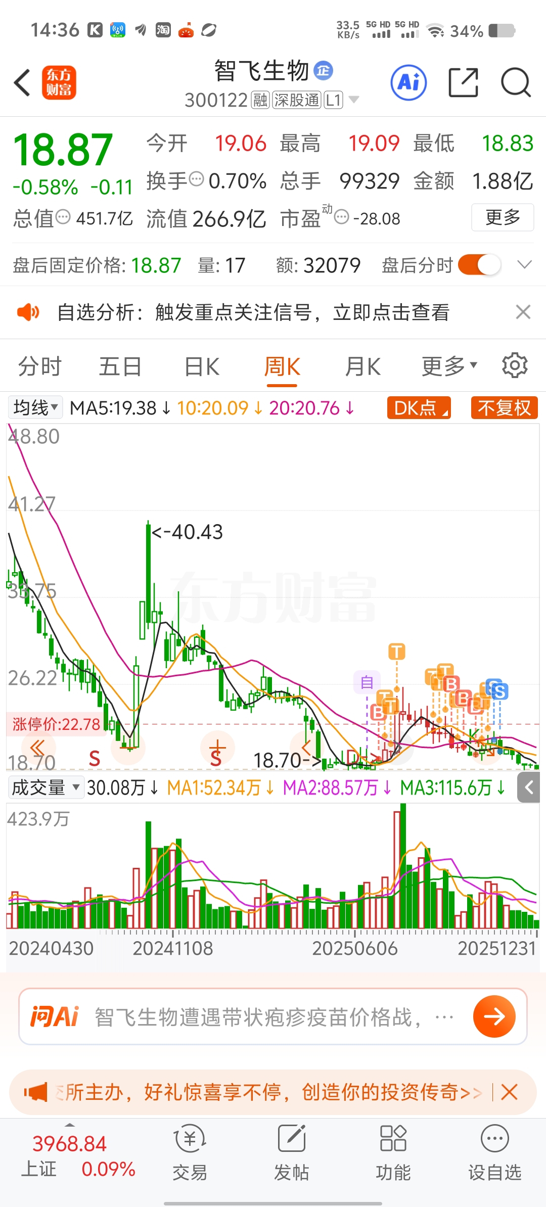 $智飞生物(SZ300122)$ 我了个去,这个票真是散户集中营,这走势就是抄底大军心中的宝贝,被河沙掩埋的黄金,后市行情爆发期的明星票。