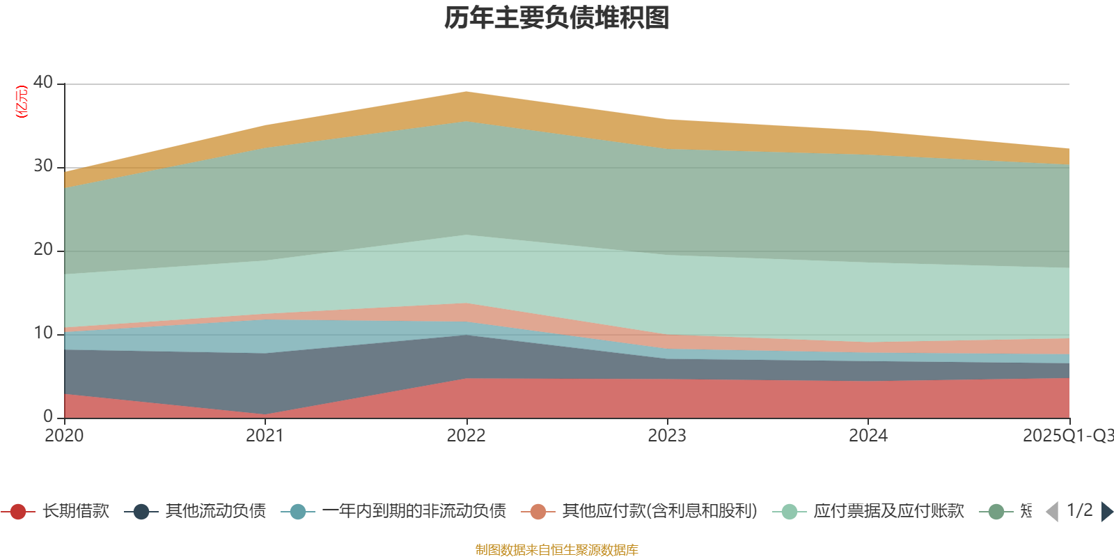 负债重大变化方面,截至2025年三季度末,公司其他应付款(含利息和股利)较上年末增加50.97%,占公司总资产比重上升1.46个百分点;长期借款较上年末增加8.4%,占公司总资产比重上升1.3个百分点;应付票据及应付账款较上年末减少11.53%,占公司总资产比重下降1.07个百分点;其他流动负债较上年末减少25.98%,占公司总资产比重下降0.97个百分点。