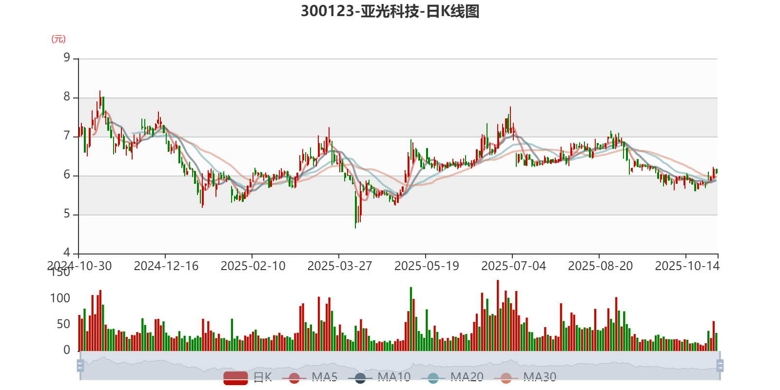 以10月29日收盘价计算,亚光科技目前市盈率(TTM)约为-6.63倍,市净率(LF)约4.22倍,市销率(TTM)约6.98倍。