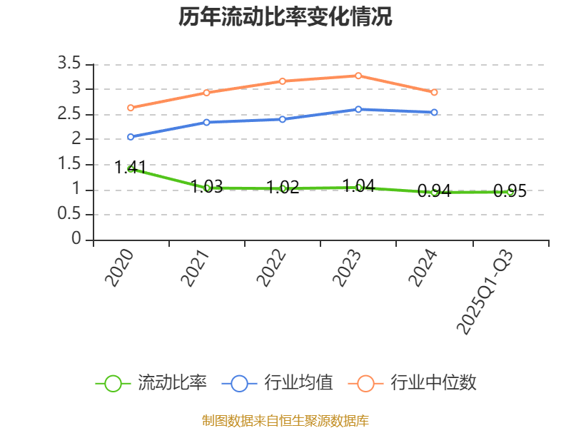 2025年前三季度,公司流动比率为0.95,速动比率为0.76。