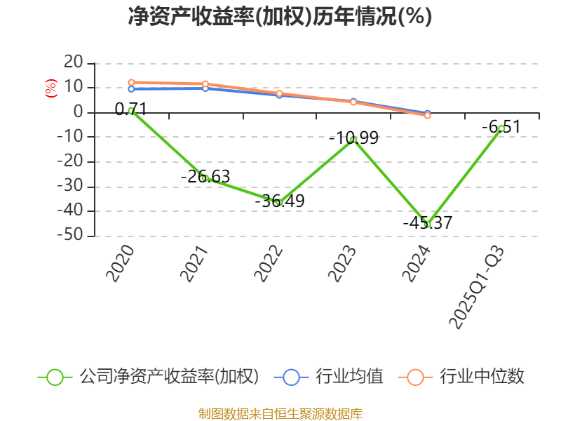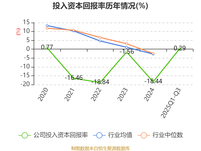 盈利能力方面, 2025年前三季度公司加权平均净资产收益率为-6.51%,同比下降3.15个百分点。公司2025年前三季度投入资本回报率为0.29%,较上年同期下降0.98个百分点。