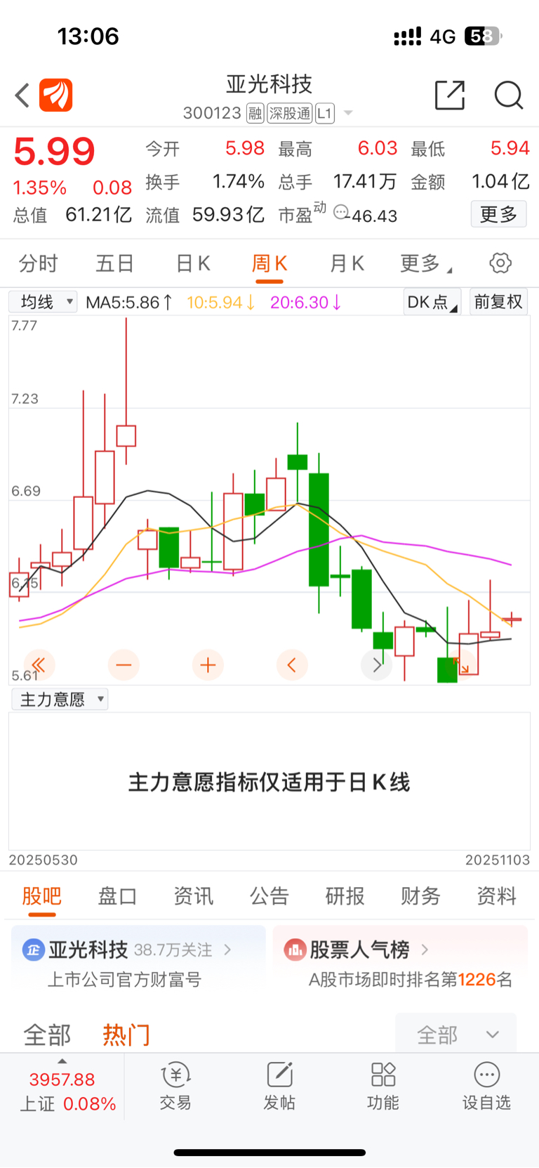 $亚光科技(SZ300123)$ 来来来,围观一下!这货一年未涨停过……