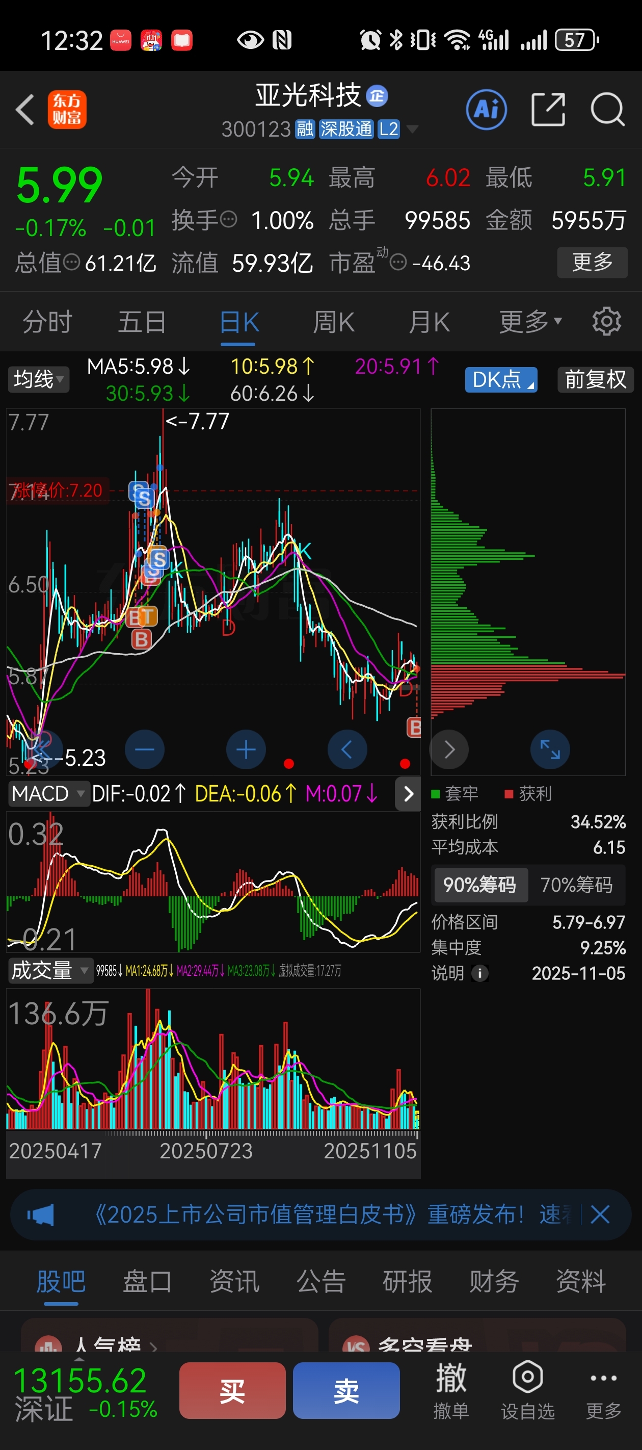 $亚光科技(SZ300123)$ 好久没买这个了,今天买点看看,不敢多买