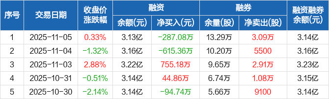 亚光科技:融资净偿还287.08万元,融资余额3.13亿元(11-05)