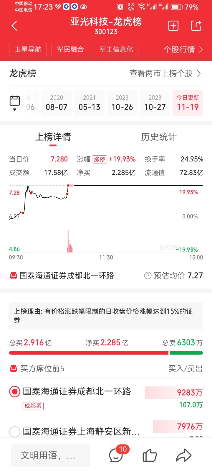 $亚光科技(SZ300123)$ 没有家人们的龙虎榜,不完美。明天应该低开把家人们放进来才好。明天要是高开高走,就是今天开板到回封,收集了足够筹码均价7.04成本,不让家人们参与,到股价高位10.07放量把家人们放进来接盘。