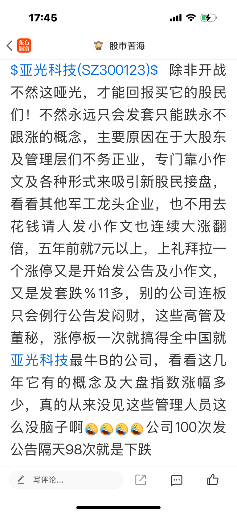 温馨提示: 1.根据《证券法》规定,禁止编造、传播虚假信息或者误导性信息,扰乱证券市场;2.用户在本社区发表的所有资料、言论等仅代表个人观点,与本网站立场无关,不对您构成任何投资建议。用户应基于自己的独立判断,自行决定证券投资并承担相应风险。《东方财富社区管理规定》