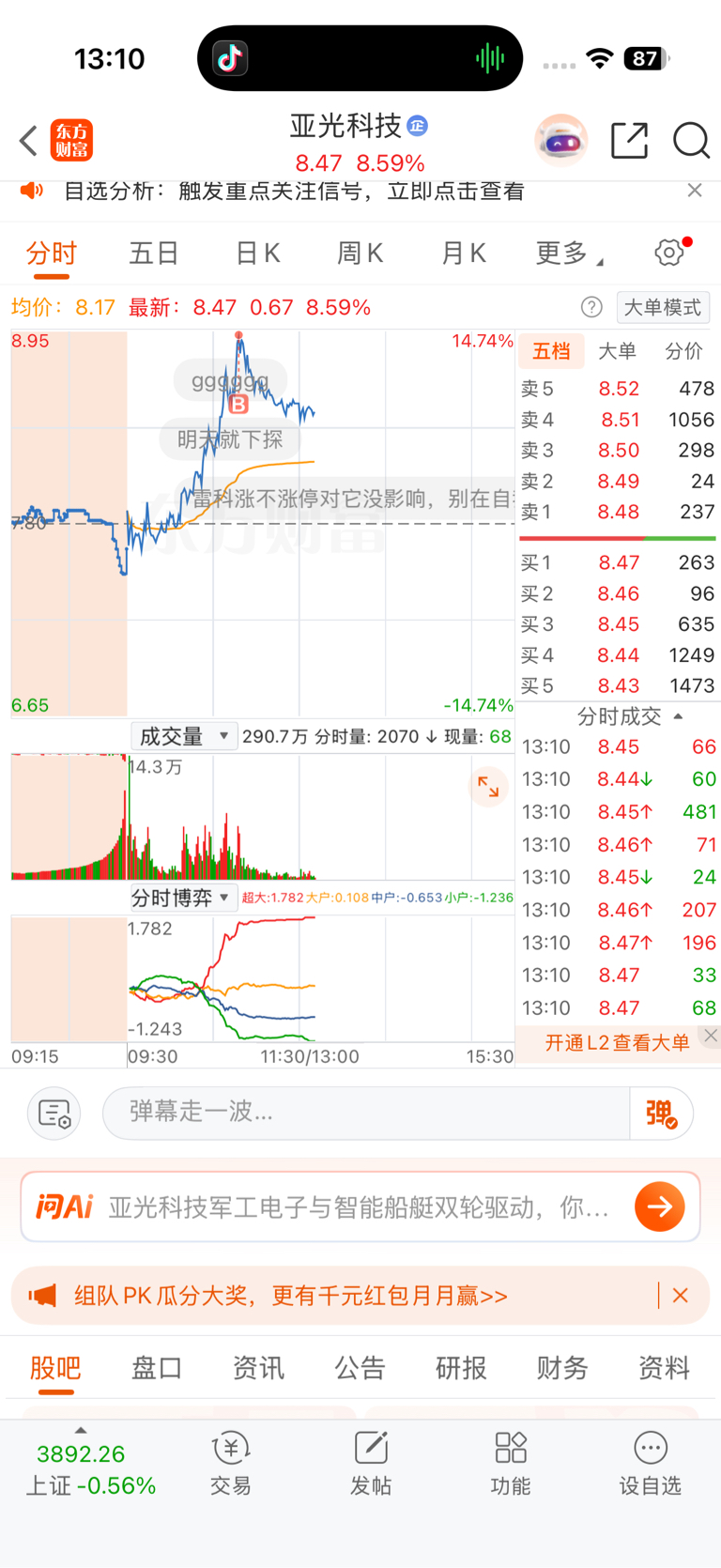 $亚光科技(SZ300123)$ 我害了兄弟们
