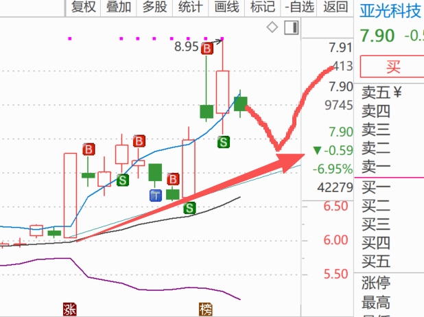 $亚光科技(SZ300123)$ 回调下跌第一天,看看明后天的情况吧。不能再跌了,再跌图形就真成这样了,就坏了龙头的希望了。