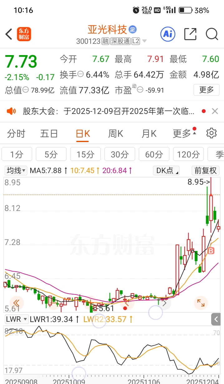 $亚光科技(SZ300123)$ 不买天天涨,一买天天跌,又被套。