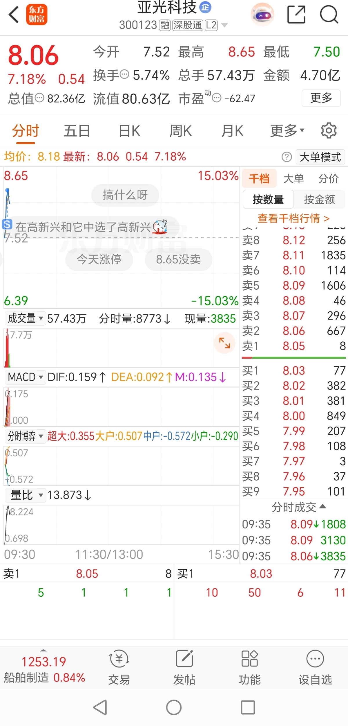 $亚光科技(SZ300123)$ 赚了14个点,已经跑了