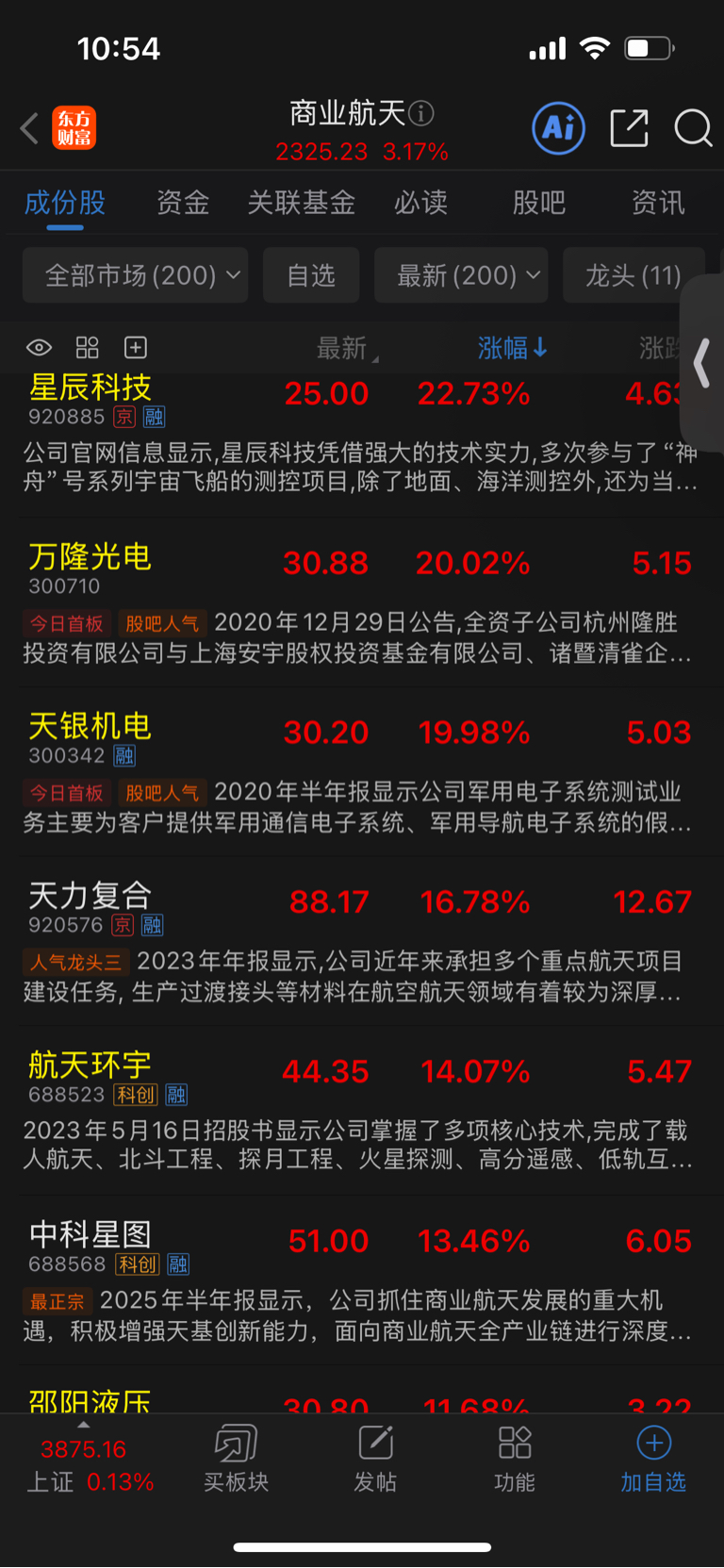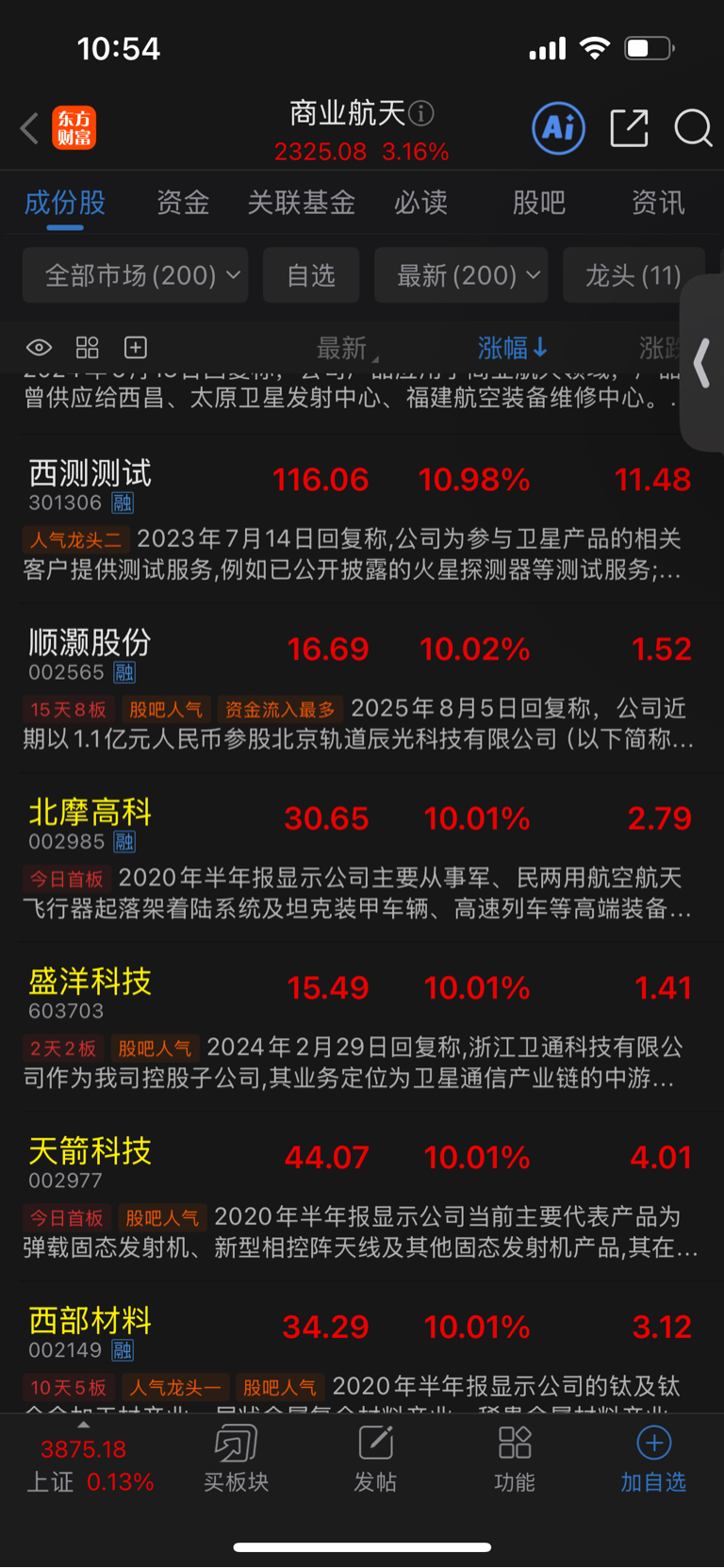 商业航天暴涨,板块10%以上的都有20家,你是正宗的商业航天股票啊!主力,加油!