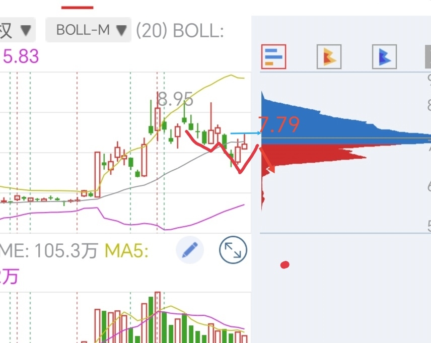 急跌再反弹形成V底,未过急跌起点7.79,下周继续跌,二次冲击7.79就是w底,