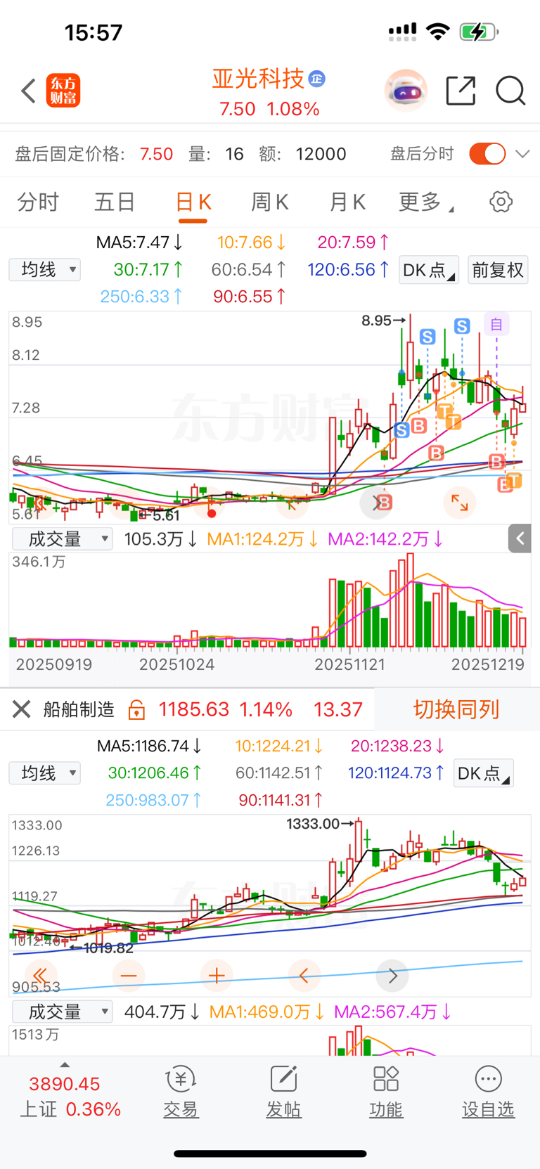 $亚光科技(SZ300123)$ 这走势完全跟船舶